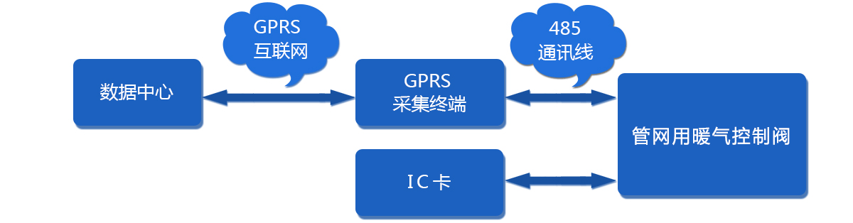 IC卡+GPRS遠傳暖氣控制閥方案通訊結構示意圖