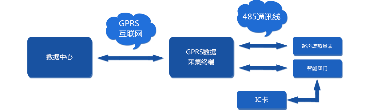 GPRS+IC卡遠傳閥控方案由(管網/大用戶)超聲波熱量表、智能控制閥、GPRS數(shù)據(jù)采集終端、IC卡、數(shù)據(jù)中心組成
